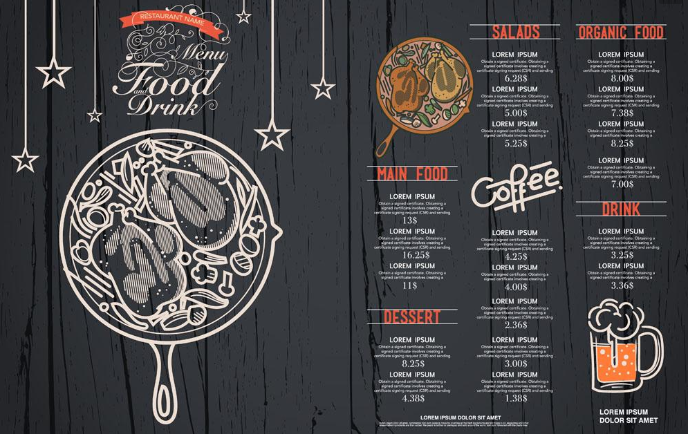 一份完美的餐厅菜单应该既便于描述,又易于阅读,且布局清晰、整洁。在餐馆菜单上要避免的一些事情:剪贴画和太多的免责声明。