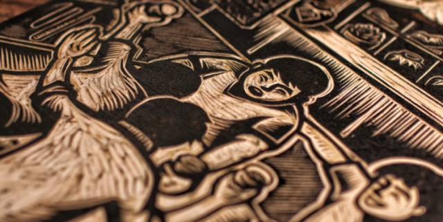 店里的LOGO、版画都是经由版画师一刀一刀精雕细琢雕刻出来的,每一块都用时超过3个月。