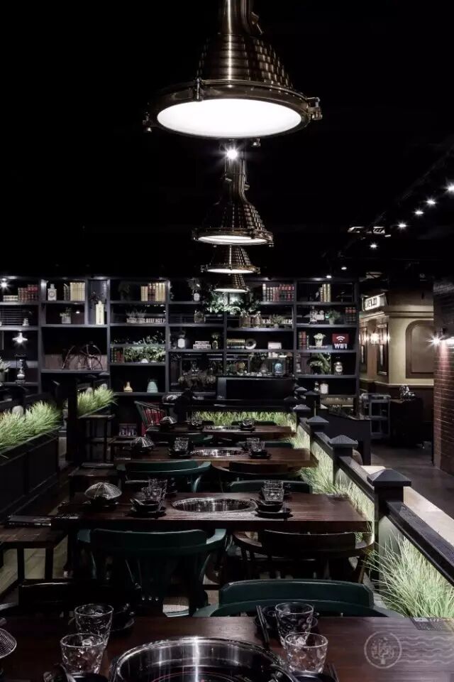 整个空间,红砖、木材、花岗岩等运用,塑造工业风格,齿轮壁挂、原木铁架、老式留声机让空间夹杂着复古的气息。