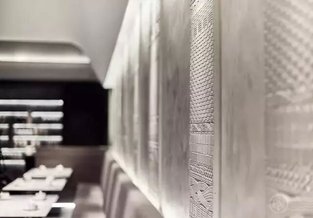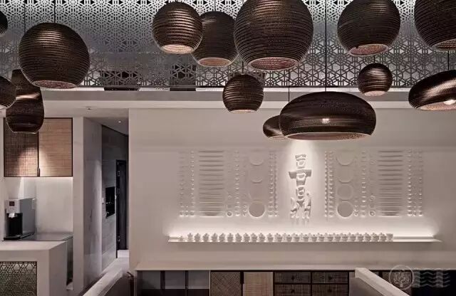 在门头设计上,睿集设计采用大面积水泥质感的灰色浮雕墙面处理,墙面的浮雕花纹根据藤编图案1:1开模制作而成。饺子则是一种古老传统的食物,而浮雕藤编图案则有一种化石感,从而加深了时间的印记,并与饺子产生了一种隐喻的呼应。