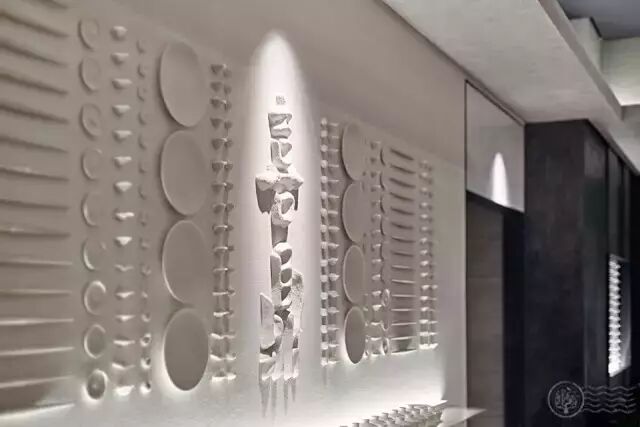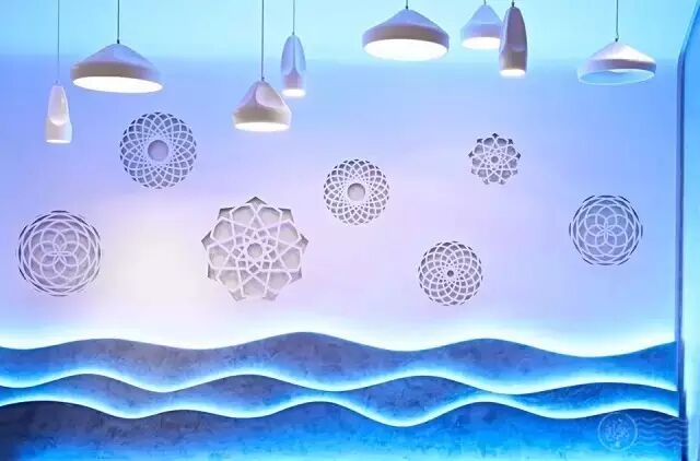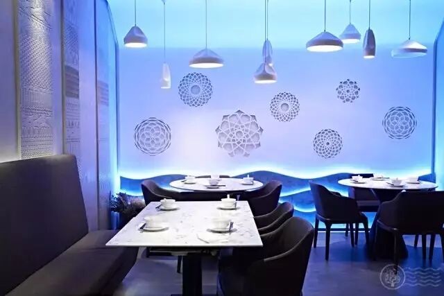 海洋墙上的LED灯带等,在心理上形成了一个虚拟分区。海洋蓝的光线,显得更加浪漫。