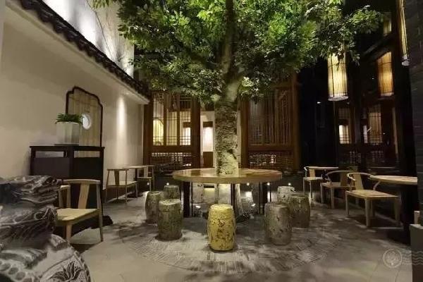 灰白色调的空间、圆形洞门和中式家具的搭配