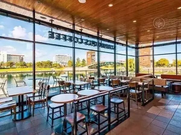 这家店坐落在富山县,傍水而建,和自然之美融合在一起,是网友票选日本最美的星巴克。在河畔伫立着,落地的大玻璃,一览无遗周围绝美的景色,是绝佳的拍照场所。