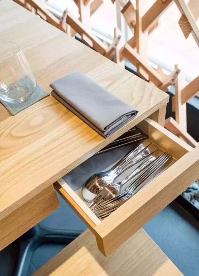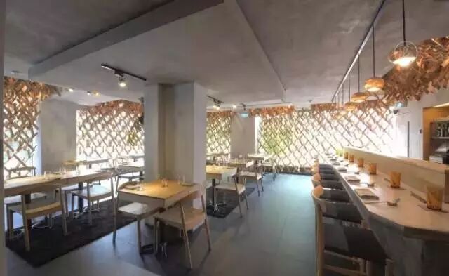 从外面看去,就已经让人眼前一亮,咖啡厅像是被鸟巢围绕的木椿设计,用各式木椿排列成几何的形状,温柔地包围了整个空间。面对如此别致的环境,你一定会惊不住的感叹。