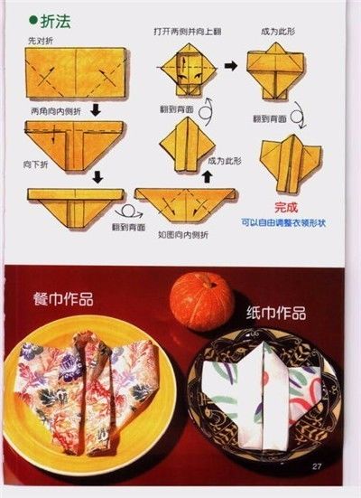 需要注意的是,口布往往会和纸巾一起摆放,而纸巾的折法和口布相同。