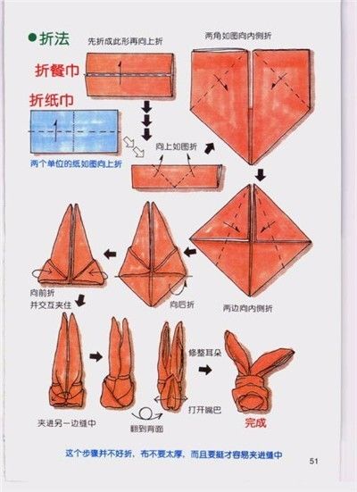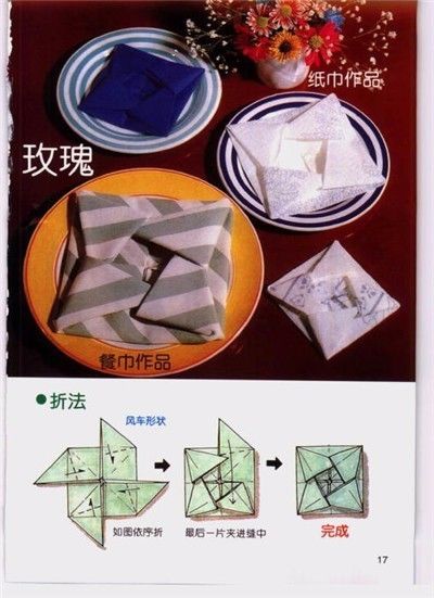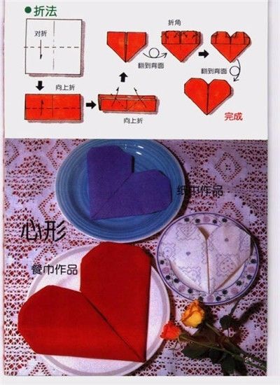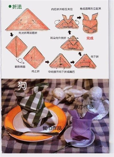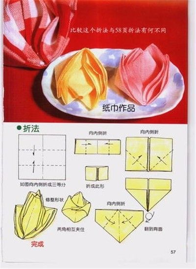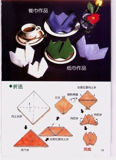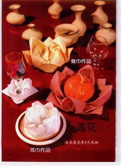 另外,按照折叠好以后的形状,也可以分为动物折、西式折、特色折等折叠方法。