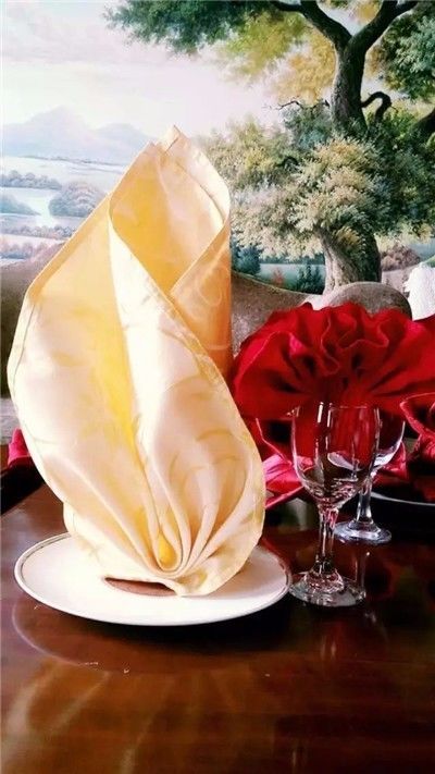 最后,我们来看一组各大酒店的口布折叠赏析图片,折叠方法如上文介绍一样,以供各位餐饮朋友参考。