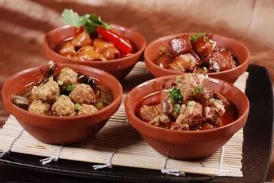 例如:佛跳墙(海味,珍禽在瓦罐中煨制,传有“荤香飘四邻,佛闻弃禅跳墙来”之说),叫花鸡 。