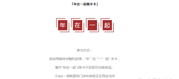 胡桃里新年的集字卡的游戏,增加消费者与品牌的沟通,让消费者不断产生复购,养成消费忠诚度。