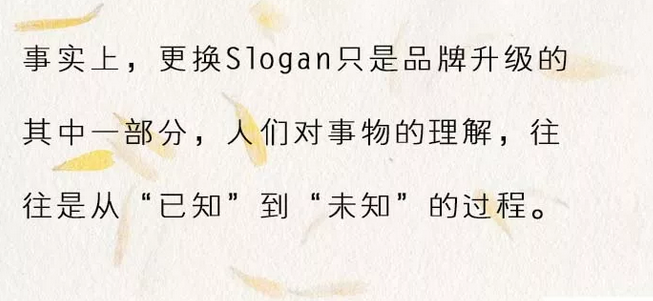 事实上,更换Slogan只是品牌升级的其中一部分,人们对事物的理解,往往是从“已知”到“未知”的过程。