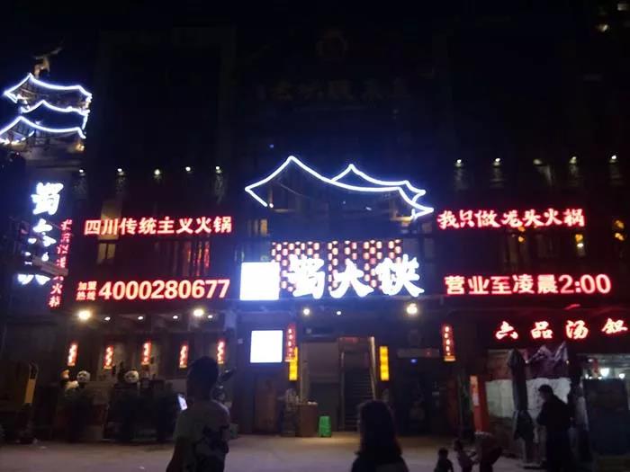 最近我们发现,成都蜀大侠火锅门店上的Slogan发生了变化,从过去的“来成都必吃的火锅”更换成了“我们只做龙头火锅”。
