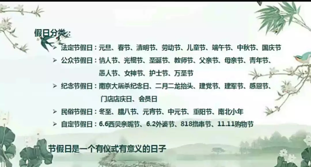 赵老师在课堂上说,要想做一次有效果的假日营销,不仅仅是简单的打折、送小礼物,这样很容易造成节日期间生意火爆,节后业绩平平淡淡。