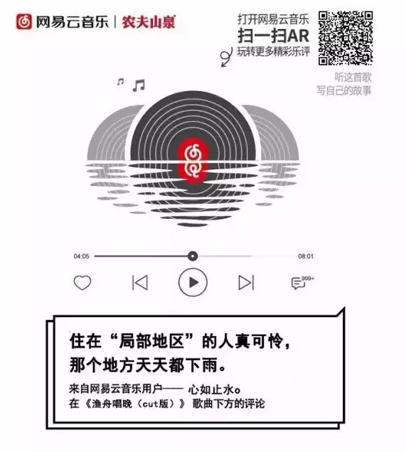 这一次他们找来了农夫山泉,将精选出来的30条评论贴到4亿瓶农夫山泉的瓶身,让每一瓶水都自带音乐和故事。