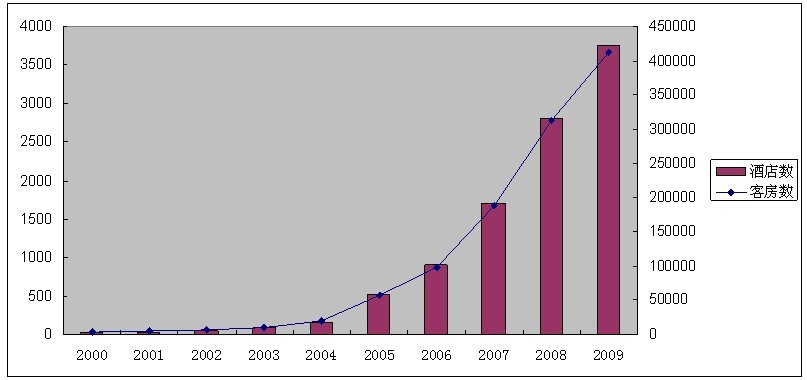 中国星级酒店2008年末已经达到14099 家,比上年增加516 家;拥有客房159.14万间,比上年增加1.76万间(资料来源:国家旅游局《2008年中国旅游业统计公报》)。