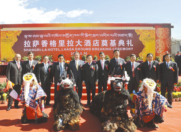 自治区党委书记张庆黎,自治区党委副书记、自治区主席白玛赤林,嘉里控股有限公司董事长郭孔丞,自治 区党委常委、秘书长公保扎西,自治区党委常委、拉萨市委书记秦宜智为工程开工奠基。自治区党委常委、自治区常务副主席吴英杰和嘉里控股有限公司董事、香格 里拉(亚洲)有限公司副董事长雷孟成分别在奠基仪式上致辞。