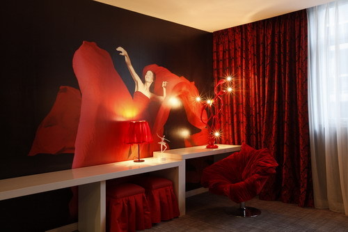 酒店设计豪华之余,侧重于艺术氛围的营造,在一楼大厅,客人通过多媒体,在短时间内可以浏览酒店不同艺术风格的房间,选择自己偏爱的居住空间,体验其中的艺术化服务,同时又在经历一场视觉的盛宴。西区客房风格多样,有国画泼墨、工笔风格,也有西方绘画的写实与抽象风格;有中国戏曲、戏剧的描绘,也有西方歌剧、舞剧的展现;有高贵豪华的电影“影帝”、“影后”、“导演”房,也有宁静风雅的画家创作空间。在这里,既能找到诙谐幽默的卓别林,也能体会忧伤淡雅的蓝调爵士;既有宽敞明亮的电脑分形艺术空间,又有恐怖阴森的幽灵世界。酒店还特别为小型聚会和“驴友”们订造了“蜂巢”空间,仅邻的小筑叠错有秩,麻雀虽小,五脏俱全,人们在此不仅感觉自由、有趣,还可以体会还原自然的空间感受。按照策划者的意图,每一位进入“艺宫”的客人,都能同时得到全感的体验和跨界的服务,与艺术亲密接触。