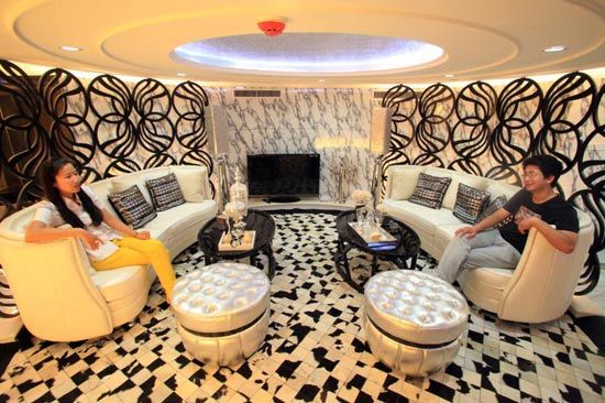 资料图:服务员在天津航母酒店首批竣工总统套房内整理新华社发