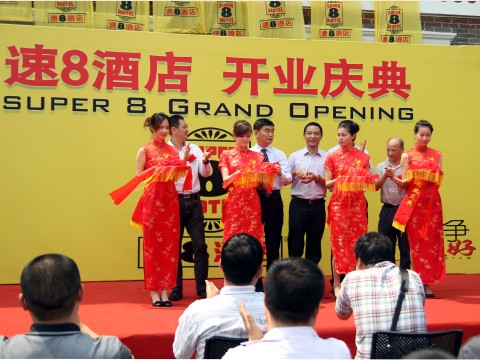 10:08分随着主持人的发言,开业庆典正式开始,下沙速8酒店董事长董总先发表开业致辞,强调了速8品牌在下沙的历史及荣誉,后有开发区领导致辞,感谢速8为下沙服务性行业带来的发展,最后由速8酒店总部副总裁房总致辞。