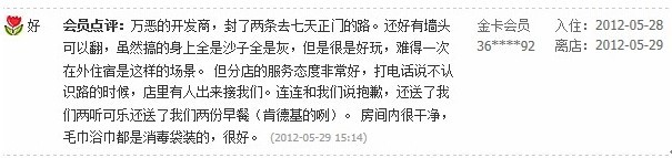 (下图为住店客人离店后在7天官方网站上的点评)