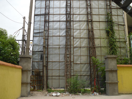 北门位于南京市浦口区桥北南路8号,已使用多年,海德北岸城开发商无故且无任何手续的情况下将桥北南路靠近北大门一段的路分三次挖断,使北门的出路完全堵死。酒店顾客及员工无法出入,当天挖断路的时候酒店客人只好翻墙出入,无奈之下只好在围墙上破了一个洞,临时出行。