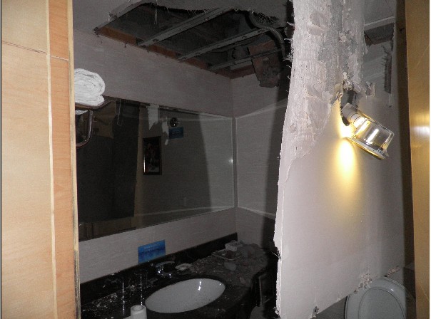 卫生间顶棚先是掉碎屑,之后突然大块碎片掉落,正在如厕的邬先生拎着裤子往外跑。这是昨日早上发生在西岗区星程豫园酒店506号房的一幕。事后,酒店给邬先生换了房间,对于事发原因,酒店方没有做出积极回应。“只有接受的份,连商量的余地都没有。 ”邬先生对此很不满意。