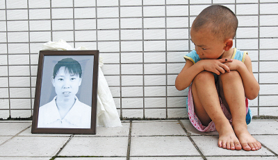 昨日,高新区,儿子正默默望着母亲的遗像本报记者 摄